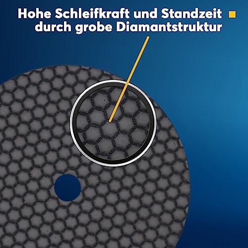 Set Professionale Di Diamante A Risparmio schleifpads Dia Dry, confezione e grana, Ø 100 mm, per taglio a secco, Pietra naturale, cemento, Marmo, Granito, perfetto per lavorare di pietre naturali, Ceramica, Finestra panchine, cucina piastre lavorat