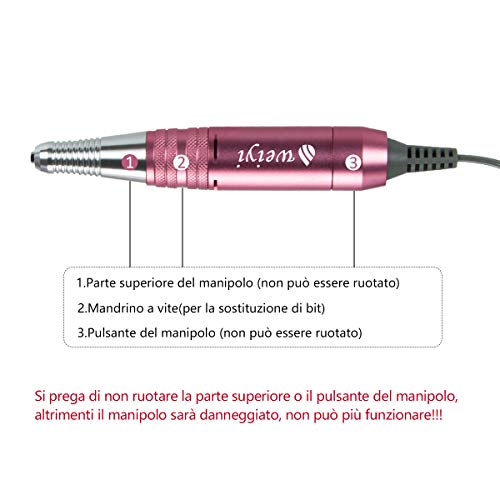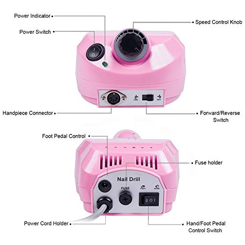Professionale Elettrico Trapano Chiodo con Pedale Manicure Pedicure Set Kit trapano unghie con 30 fresa Punte e 300 levigatura bande rosa