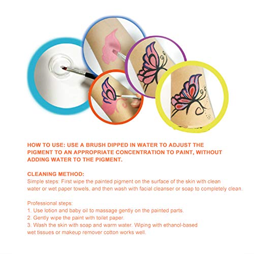 ¡¾Ingredienti sicuri¡¿ Nessun danno al corpo, pu¨° essere utilizzato per adulti e bambini. Adatto sia per la pittura del viso che per il corpo, pigmento idrosolubile, facile da pulire