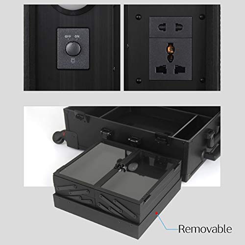Professionale 2 In 1 Trucco Trolley Beauty Case Valigia da Viaggio Studio Specchio Grande illuminato Tavolo da Trucco Pieghevole Artista Cosmetico con 6 Lampadine + 4 ruote 360 °