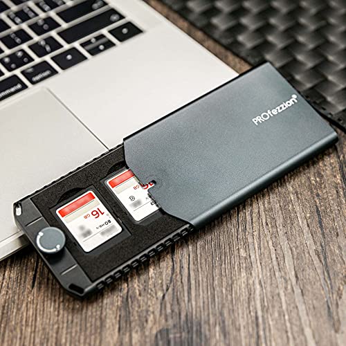PROfezzion SD Card Case Custodia per Scheda di Memoria Sottile in Alluminio 9 Slot Interni in EVA per 3 schede SD SDHC SDXC 6 x Schede Micro SD/TF