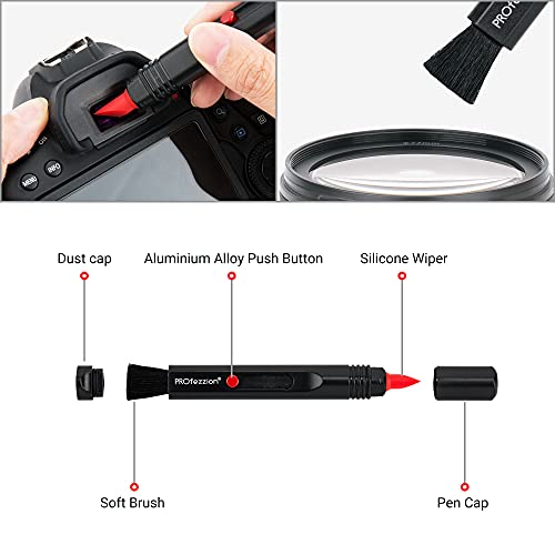 PROfezzion Elements - Penna per pulizia elettronica con spazzola per auricolari cablati e wireless, cellulari, fotocamere, fotocamere, fotocamere, chiavi, ecc. - nero