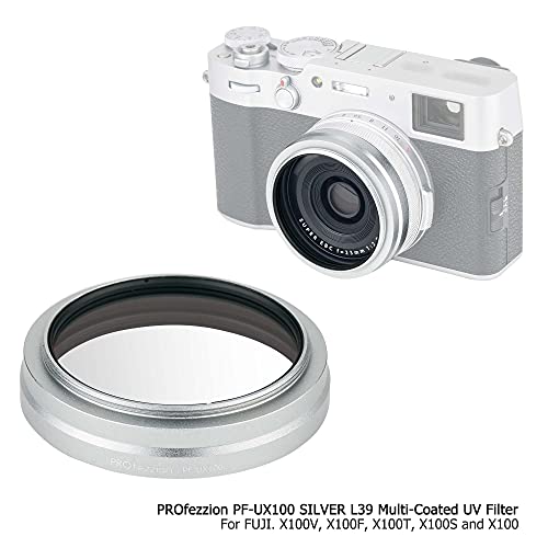 PROfezzion Paraluce in Metallo con Filtro Protettivo UV Multistrato L39 per Fotocamere Fuji Fujifilm X100V, X100F, X100T, X100S e X100, Compatibile con Paraluce Originali Fujifilm X100,Colore:Argento