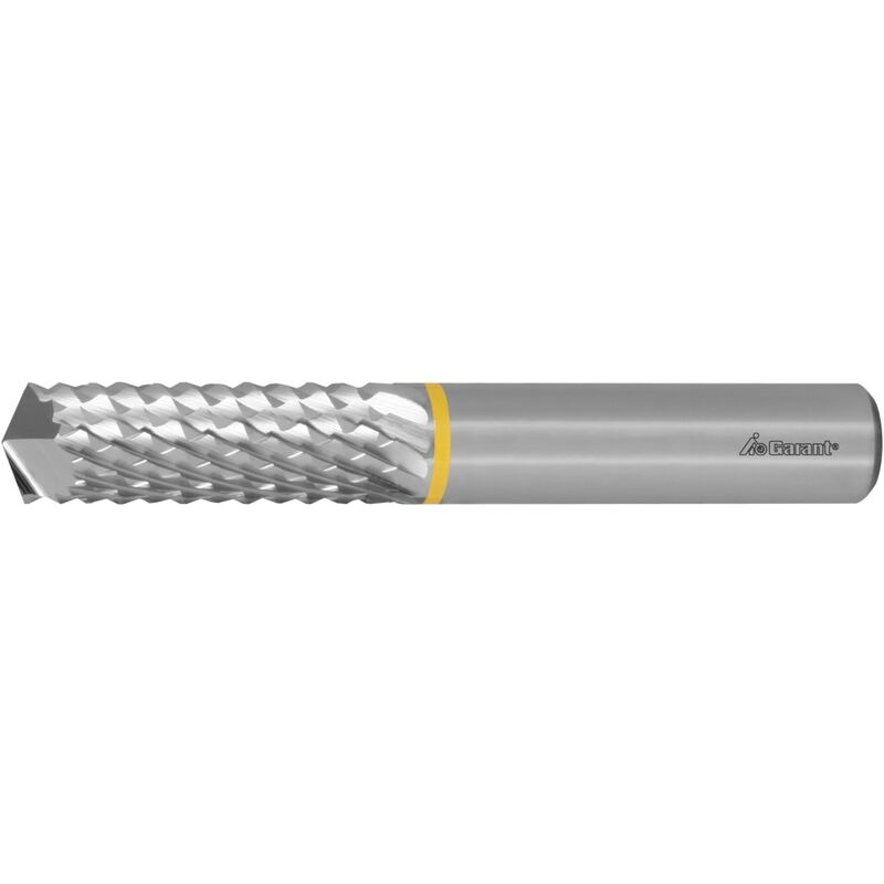 Dentatura alternata ad alte prestazioni e punta a 135° per la lavorazione economica di materie plastiche rinforzate con fibra di vetro. Per la fresatura di scanalature in fase di sgrossatura. Taglio a tirare, con spirale a destra per impiego normale. Dim. 5M, 6M, 8M: Esecuzione extralunga. Dati tecnici Aria idoneo PEEK CF30 m/min idoneo PEEK GF30 m/min idoneo PA 66 GF30 m/min idoneo a secco idoneo GFRP m/min limitatamente adatto PVDF GF20 m/min idoneo POM GF25 m/min idoneo CFRP m/min limitatamente adatto PTFE CF25 m/min idoneo a umido max. idoneo Rivestimento non rivestito Angolo di affilatura Grad 135 Passaggio interno per LR no Grado di finezza della dentatura medio Materiale da taglio HMI Direzione di avanzamento orizzontale, obliquo e verticale Colore collarino giallo Tolleranza ⌀ nominale h10 Tolleranza codolo h6 Profilo fresa A denti alterni Modello W Norma Norma interna Codolo DIN 6535 HA con h6 Larghezza di fresatura ae per operazioni di fresatura 0,5×D per contornatura Tipo