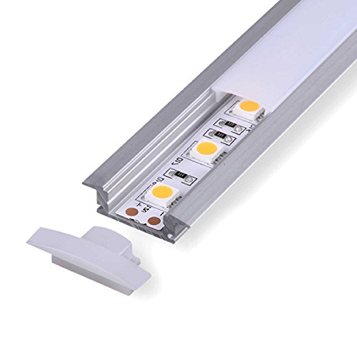 Profilo Alluminio 2 m APTA (AT) 2 meter striscia di profilo in alluminio anodizzato per strisce LED - Set per copertura della guida bianco latte (Opal) trasparente trasparente con kit di staffe e terminali, 2 Meter transparent click, keine