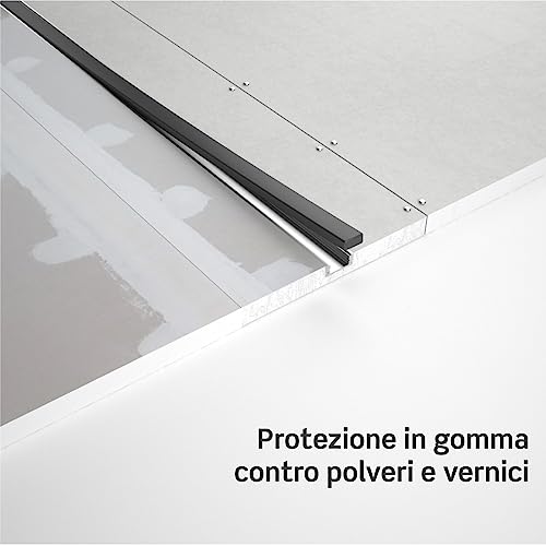 Profilo incassato nel cartongesso facile da installare direttamente sul montante. Inclusa protezione in gomma contro polveri e vernici