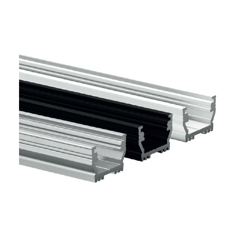 Profilo in alluminio per installazione LED su superfici piane. Colore alluminio, cover opale