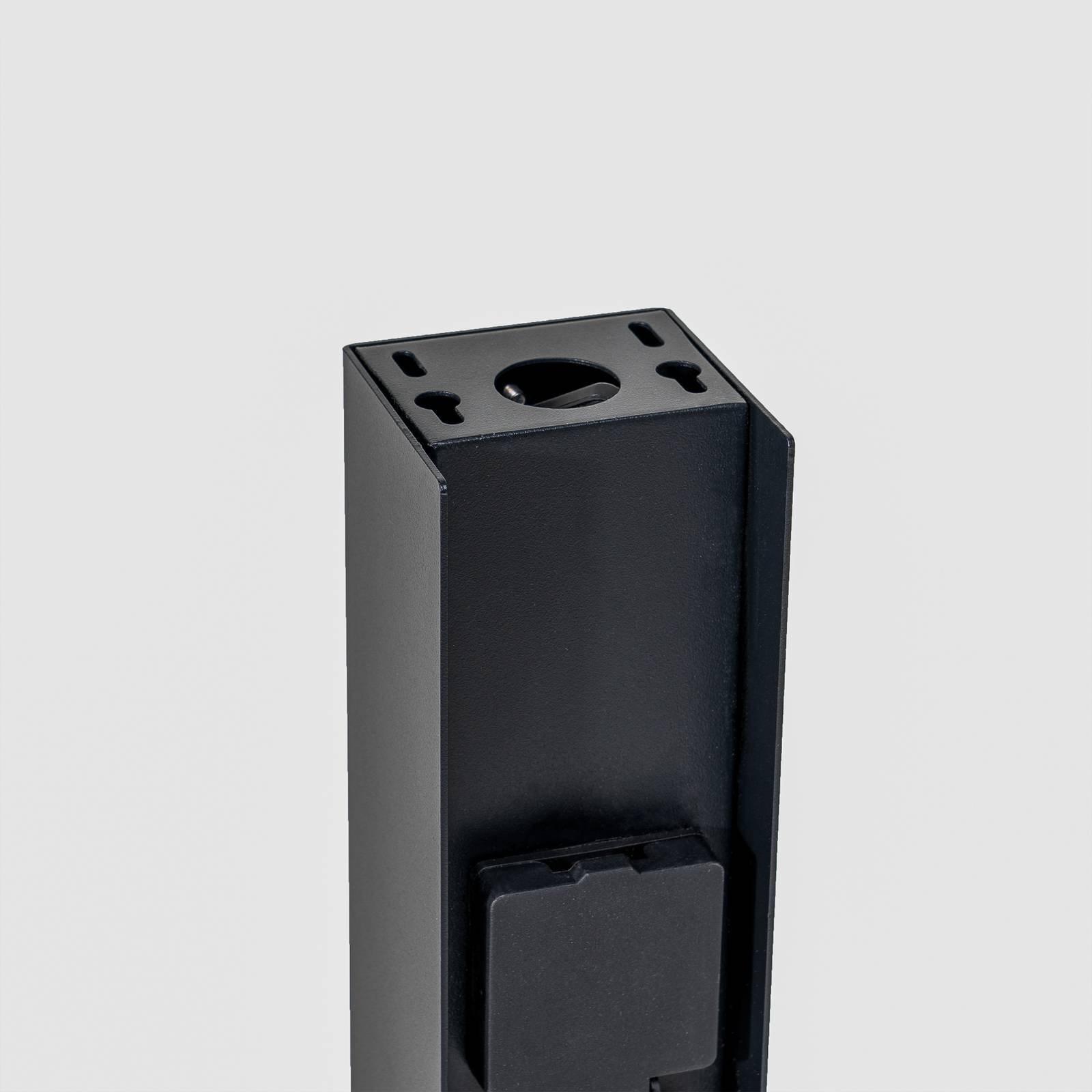 Colonna elettrica moderna Foranda in nero con 2 prese di corrente Il corpo di questa colonna di prese di corrente è realizzato in acciaio inox con finitura nera, per cui il design è molto lineare e moderno e si sposa bene con l'architettura contemporanea. Le due prese sono protette da un coperchio a cerniera e possono essere dotate di vari dispositivi, in modo permanente o temporaneo. Ad esempio, è possibile alimentare gli attrezzi da giardinaggio, ma è anche possibile collegare qui l'illuminazione decorativa stagionale in estate o in inverno e illuminare splendidamente il giardino o la casa all'esterno. 2 x CEE 7/3 (max. 16A/max. 3600 W)