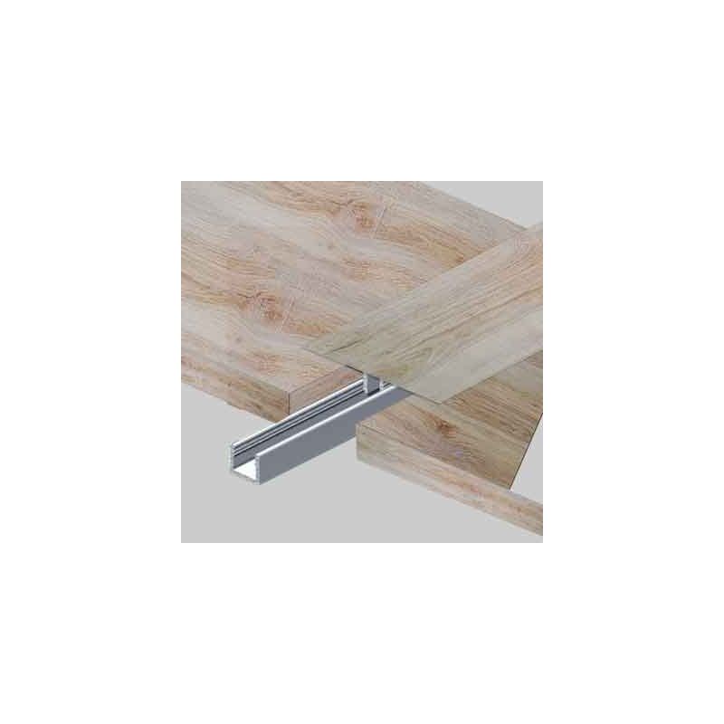 Profilo universale di giunzione in alluminio rivestito con pellicola in pvc molto resistente al calpestio e all'usura. Dimensione mm 2700x42x18. Completo di guida in alluminio mm 12x8. Profilo di raccordo 'fix' per colore samyeli ARCANSAS Laminato