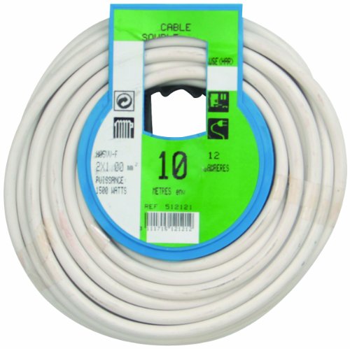 Profiplast PRP512121 - Rotolo di cavo H05VVF, lunghezza: 10 m, 2 x 1 mm, colore: bianco
