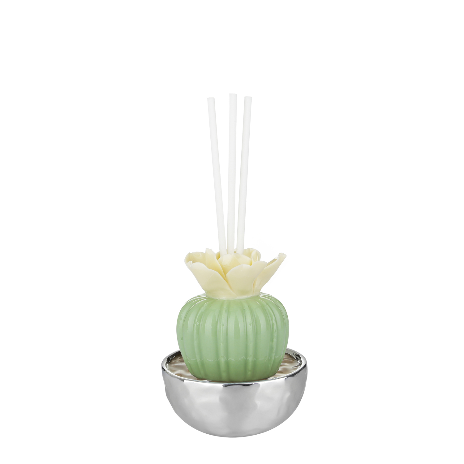 I diffusori a bastoncino di Beltrami sono realizzati in Italia con i migliori materiali per arredare la tua casa con gusto e renderla più accogliente. Il profumatore in porcellana, con la sua caratteristica forma a cactus, sarà l'elemento perfetto da inserire come soprammobile nella tua libreria, su mensole o tavoli per diffondere al contempo una piacevole fragranza. Completo di scatolina, include fragranza in boccetta e bastoncini in rattan per un rilascio graduale della profumazione. Dimensioni: 8x6 cm.