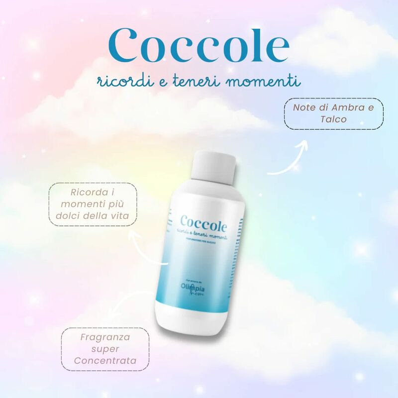 Profumatore per bucato Coccole della linea OH Fragrance di Olimpiahome. A ogni lavaggio, lascia che il profumo di Coccole ti trasporti in un mondo fatto di ricordi preziosi e momenti teneri, avvolgendo i tuoi abiti con un'essenza che esalta il confortante aroma del talco, trasportandoti indietro nel tempo con ogni respiro. Il profumo che fa sentire a casa. Un dolce abbraccio di limone e arancia si fonde con il confortante aroma del talco, evocando l'innocenza dell'infanzia e l'amore materno . Rosa bulgare e iris danzano con ambra e spezie, per poi fondersi in una base coccolosa di vaniglia e musc, evocando abbracci teneri e il calore del focolare . Perché dovresti acquistare i profumatori per bucato Olimpiahome? ? Abbraccia i ricordi: Un profumo che dura, per rivivere teneri momenti ogni giorno. ? Concentrato di risparmio: ne utilizzi solo la metà rispetto ad altri prodotti sul mercato! ? Più verde, più sano: Con olii essenziali naturali, proteggi la tua pelle e l'ambiente. Piramide