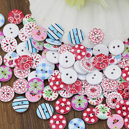 Profusion Circle 100pcs misto bottoni in legno 2 fori cucito fai da te Craft scrapbook