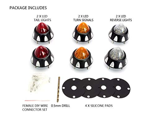 SONO REALMENTE REALIZZATI E PRATICI: 12V / Prodotto di altissima qualità, realizzato in alluminio billet 6061 lavorato a CNC e con hardware in acciaio inossidabile 304 / Funzione 1: stop / fanali posteriori / funzione 2: indicatori / indicatori di direzione / funzione 3: retromarcia luci