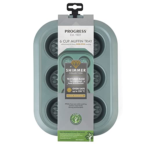 Progress BW09824G2EU7 Shimmer - Teglia per muffin con 6 stampini antiaderente, facile da pulire vassoio torta, durevole vassoio torta rettangolare, Ideale per realizzare dolcetti dolci e salati, verde