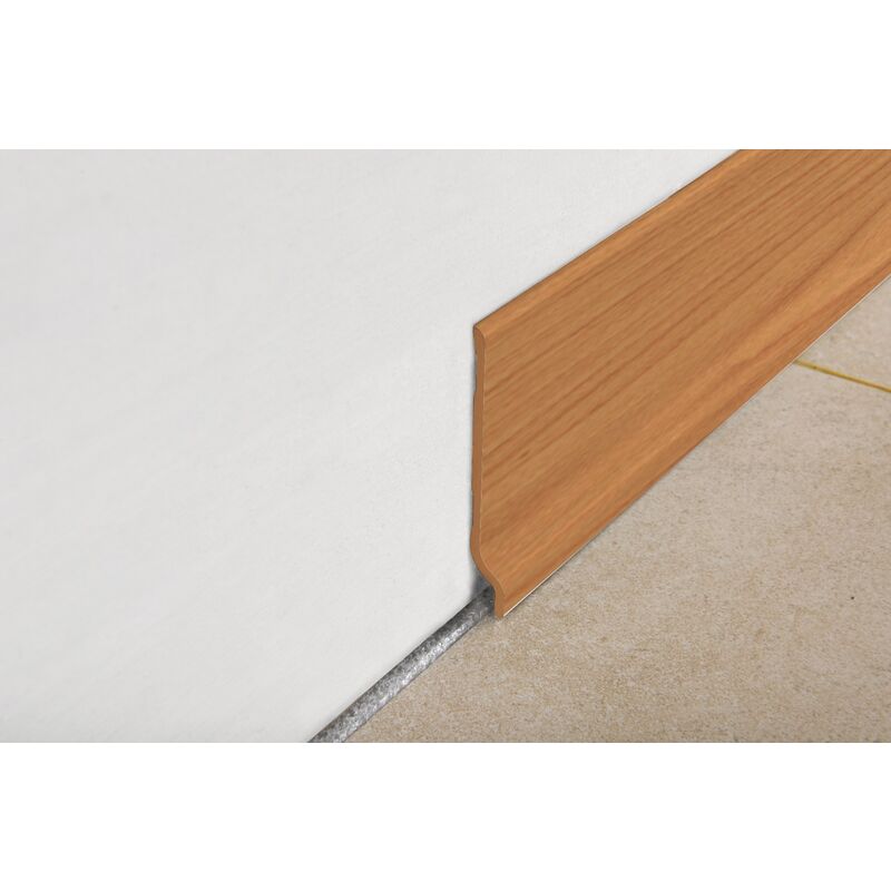 Battiscopa pvc espanso Battiscopa pvc espanso ciliegio chiaro h 70 mm barre 2 ml Battiscopa prodotto in pvc espanso h: 70 mm da abbinare ai profili proinsert system per pavimenti flottanti in legno laminato e per abbinare al legno parquet tradizione. la posa viene fatta per incollaggio (silicone acettico-acrilico-mastice) oppure con viti o chiodi. esteticamente gradevole, resistente, duraturo ed economico, facile da posare e ideale per molti ambienti pubblici (ospedali, scuole, palestre, case di riposo e aree creative) e per ambienti privati. facile da abbinare a molte essenze legno.