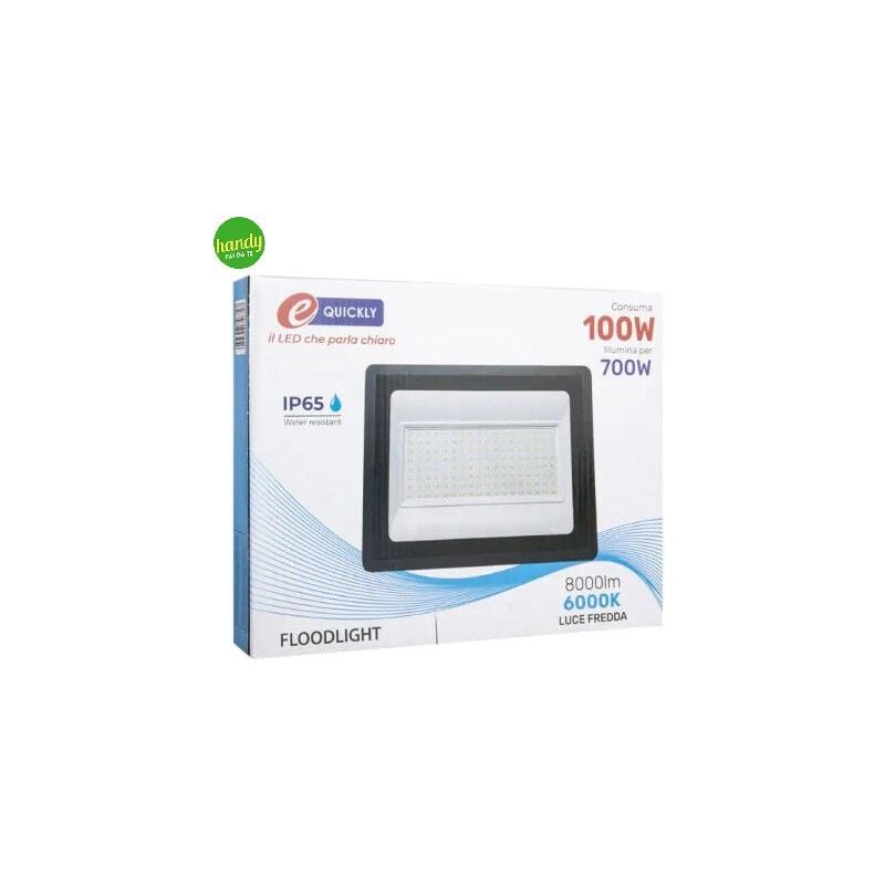 Faretto LED, prodotto dal brand E-Quickly, ultrasottile ed a risparmio energetico - Potenza di 100W luce fredda 6000K, con angolo di fascio ampio 120°, che illumina le aree più ampie con una luce più brillante. Alloggiamentoin alluminio pressofuso con vetro temprato, scocca predisposta ad un'eccellente dissipazione del calore e con elevata resistenza ad urti e corrosionedi vario tipo grazie ad una lavagna in vetro infrangibile. Grado di protezione IP65, ciò significa che è resistente all'acqua e polvere grazie ad un anello in silicone sigillato incorporato.