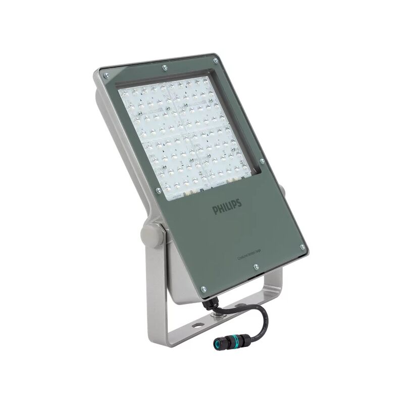 Proiettore LED BVP130 260/740 LED asimmetrico in alluminio grigio, progettato per la sostituzione punto per punto della tecnologia convenzionale mantenendo gli stessi pali e impianti elettrici. CoreLine Tempo è facile da installare, offre diversi flussi luminosi e diverse ottiche (simmetrica e asimmetrica) per adattarsi al meglio a diverse applicazioni e esigenze. Inoltre, i modelli BVP125 (Medio) e BVP130 (Grande) offrono ora grandi possibilità di risparmio energetico offrendo diverse opzioni di regolazione (DALI) e maggiore comfort visivo aggiungendo l'opzione 3000K.