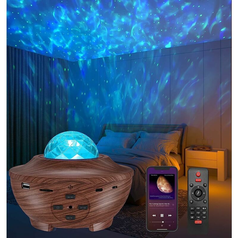 10 Colori & 【Stelle e onde dell'oceano - - Crea un'atmosfera rilassata proiettando colori ed effetti realistici dinamici combinati sulla parete o sul soffitto. È possibile scegliere la modalità di visualizzazione in base al proprio umore o all'ambiente. 【Telecomando e controllo vocale】- È possibile utilizzare il telecomando per aprire/disattivare la macchina, ruotarla o non ruotarla, regolarla luminosità, suono e timer. Il controllo vocale ti consente di cambiare il colore del display al ritmo della musica o di battere le mani per un effetto discoteca. il telecomando è alimentato da 2 batterie AAA. (non incluso) 【Altoparlante integrato】- Collega il tuo telefono Bluetooth con la luce notturna o collega la porta USB per ascoltare musica ninna nanna, musica rilassante e meditazione allo spettacolo di luci. Il volume regolabile si adatta alla pace e al dolce sonno del tuo bambino. Goditi la bellezza del cielo stellato con i piaceri del relax, canzoni dall'atmosfera calda della luna.