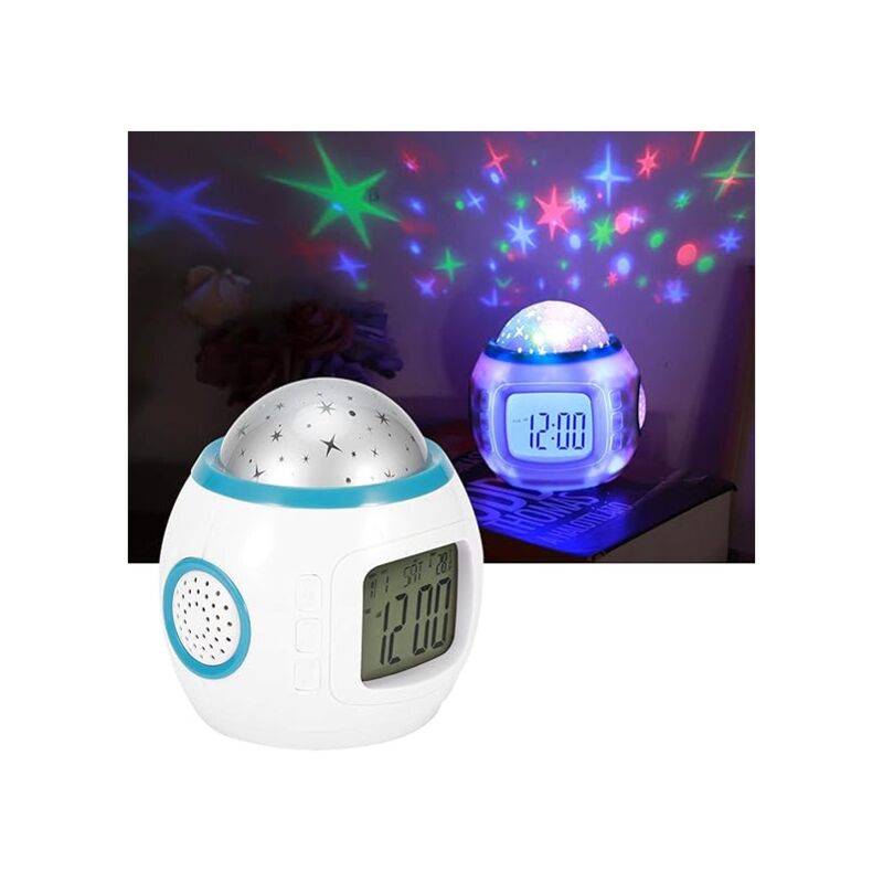 uno schermo digitale in grado di visualizzare l'ora e la data. L'orologio può aiutarti a svegliare i tuoi bambini al mattino e la funzione snooze ti concede qualche minuto di pisolino. [Proiettore stellare] La lampada del proiettore stellare può proiettare una luce stellare realistica sul soffitto o sulla parete, che non è solo un'esperienza confortevole e rilassante prima di coricarsi per i bambini, ma può anche aiutare i tuoi figli a conoscere la scienza astronomica universale. [Apprezzamento musicale] Ci sono 10 canzoni, tra cui onde sonore naturali, bolle, acqua che scorre e canzoni ;