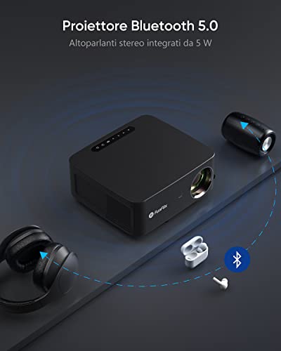 proiettore bluetooth Con un chip Bluetooth 5.0 integrato e altoparlanti surround stereo per il collegamento di cuffie Bluetooth, altoparlanti Bluetooth e Airpod, Riflette il suono di ogni dettaglio per un'esperienza visiva coinvolgente