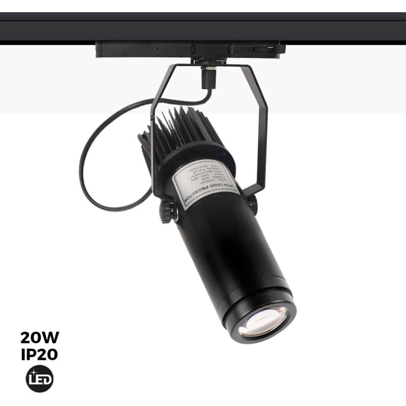 Proiettore LED GOBO per la proiezione di loghi, immagini e badge in ambienti interni. I proiettori di logo sono noti anche come LED GOBO, GOBO projector o GOBO LED. Con una potenza di 20 W e un'intensità luminosa di 2200 lumen, questo proiettore è progettato per essere installato su binari trifase per interni. Proietta immagini fisse in alta definizione. Ha un'ottica di 20° con messa a fuoco regolabile manualmente. Può ruotare e inclinarsi di 360°, consentendo di orientare il fascio nella direzione desiderata. Ha una portata di 5-15 metri al buio e di 3-4 metri alla luce del giorno. Barcelona LED offre un servizio di incisione laser del logo sul vetro a specchio. L'acquisto del faretto include l'incisione gratuita di un primo logo fino a 4 colori (tempo stimato di consegna: 10-15 giorni).