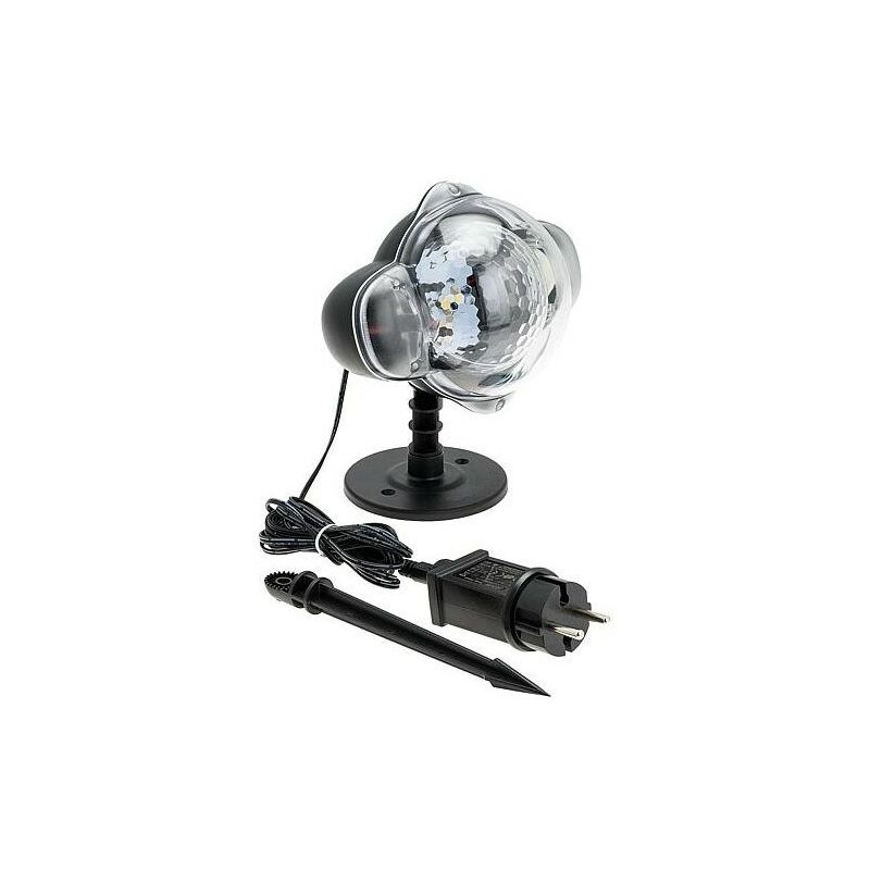 Proiettore Garden Nevicata di Punti Led Bianco, a 9m illumina un'area di Ø10m, Nevicata con movimento verticale, Corpo Base e Picchetto in Plastica, Trasformatore Bassa Tensione di Sicurezza, IP44 Uso Esterno e Interno. Cavo alimentazione Nero 4m, Dimensioni 20x15xH20cm.