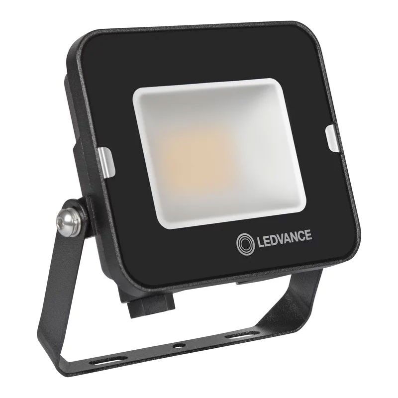 Proiettore a LED Ledvance Osram con le seguenti caratteristiche: Potenza: 135W Lumen: 12150 Lumen/Watt: 90 Temperatura di colore: 3000K (luce calda) Grado di protezione IP65 (uso esterno) L70: 50000 L80: 35000 Equivalente ad un proiettore di 1000W Colore: nero Caratteristiche: Efficienza: fino a 100 lm/W Angolo del fascio simmetrico: 100° × 100° Staffa di montaggio con angolo di 30° e ampia area di rotazione Materiale corporeo: Alluminio Materiale di copertura: Vetro temperato Materiale di superficie che emette luce: Bicchiere Classe di protezione IK (resistenza agli urti): IK06 Vantaggi: Design robusto ma leggero e compatto Illuminazione sicura e molto uniforme, grazie al diffusore in vetro smerigliato e temperato Nessuna fuoriuscita dell'emissione luminosa nella parte superiore (ULOR 0%) quando montato con un'inclinazione di 0° Risparmio energetico fino al 90 % rispetto ai proiettori con lampade alogene Applicazioni: Sostituzione per proiettori con lampade alogene Uso esterno (IP65)