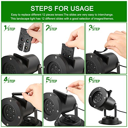 Proiettore Luce Natale del Paessaggio Festa Decorativa Decorazione Natale Halloween, 12 Tipi Temi Sostituibile Diapositive con Multicolori Festa Tema Fata Luce per la Decorazione di Natale di Halloween Festa Nuziale Compleanno
