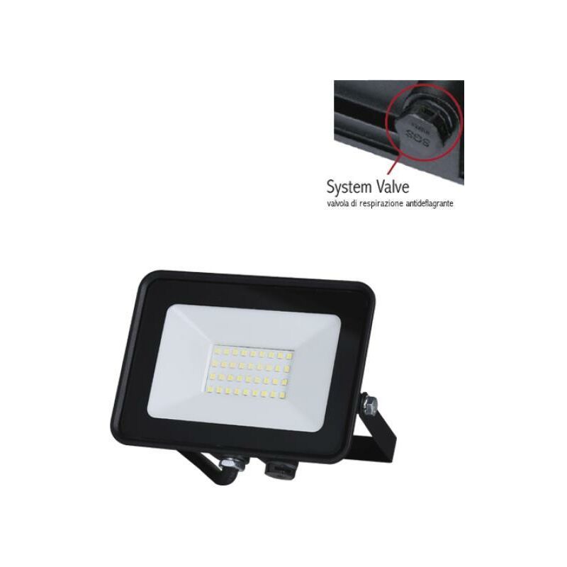 Proiettore LED ECO 30W Nero Stone 7208/N Dimensioni: 155 × 24 × 125 mm Wattaggio: 30W Lumen: 3000 Lumen Temperatura: K 4000 Grado di Protezione: IP65 Autonomia: 50.000 ore