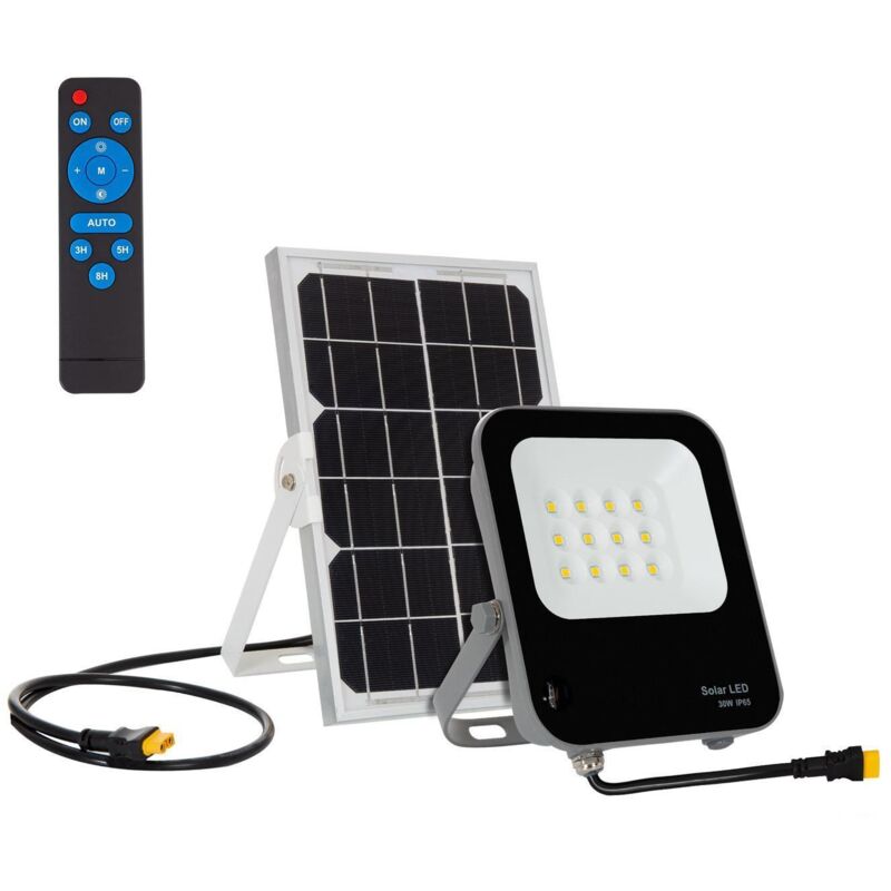 Il Proiettore LED Solare 30W 170lm/W IP65 con Telecomando si distingue per la possibilità di essere ricaricato tramite il pannello solare integrato e per il telecomando. Caratteristiche del Proiettore LED Solare 30W 170lm/W IP65 con Telecomando Questo faretto per proiettore da 30 W ha dimensioni ridotte, una finitura altamente funzionale e si ricarica automaticamente con l'energia solare. Non necessita di collegamento alla rete elettrica . Le sue ottiche SMD5050 sono molto efficienti . La luce che emette è distribuita con un angolo di apertura di 90°, perfetto per illuminare tutti i tipi di spazi e permette di direzionarlo. Progettato per l'uso in spazi esterni poiché il proiettore LED ha una protezione IP65. È realizzato in alluminio di alta qualità, un materiale che aiuta ad eliminare efficacemente il calore generato. Funzionamento del Proiettore LED Solare 30W 170lm/W IP65 con Telecomando Viene caricato dall'energia solare in un tempo di 5-8 ore. Questo tempo di ricarica dipende da