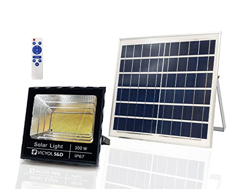 Proiettore a LED Solare, Luce Solare per Esterni da 200 W, Illuminazione di Sicurezza IP67 Luce 4000K, Faretto a 920 LED con Pannello Solare per Patio, Giardino, Garage. 18 Ah. Impermeabile.