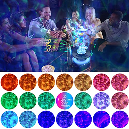 Proiettore 3 in 1 stella: proiettore Galaxy + luce notturna + altoparlante Bluetooth. La lampada del proiettore ha 20 modalità di illuminazione che proiettano sul soffitto e sulle pareti per creare immagini dinamiche di stelle, galassie, onde d'acqua e atmosfera romantica, puoi trovare l'atmosfera che fa per te, quando sei alla sera, festeggi feste o dormi.