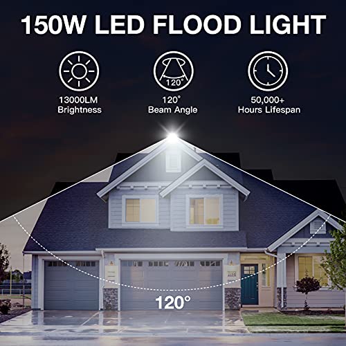 CP3 Proiettore LED, 150 W, super luminoso, 13000 lm, luce di sicurezza con spina, IP66, impermeabile, per esterni, supporto regolabile a 320°, 5000 K, luce bianca diurna, garage, giardino
