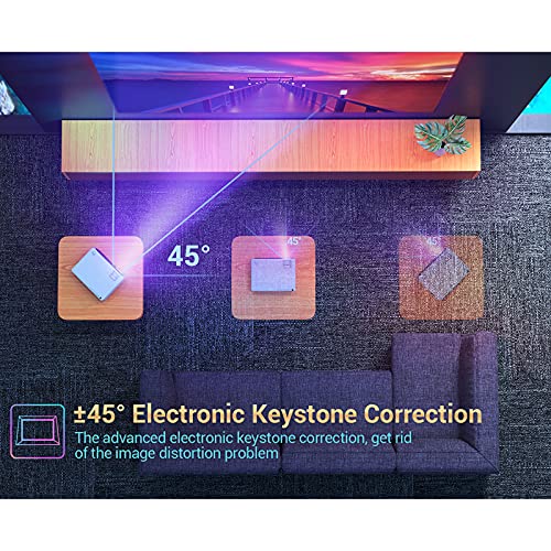 【KEYSTONE ELETTRONICO ± 45 °】 Il proiettore a LED utilizza una tecnologia avanzata di correzione trapezoidale elettronica, che crea la possibilità di regolare automaticamente la correzione trapezoidale di 45 °. Innovativo sistema di raffreddamento con dispersione del calore e una potente tecnologia di riduzione del rumore, riduce il rumore della ventola di 80%.