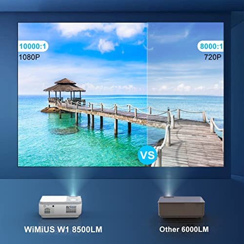 Proiettore WiFi Bluetooth 5G, WiMiUS Proiettore 8500 Lumen 1080P Nativo Full HD, Videoproiettore per iOS/Android/Windows, Proiettore per Home Cinema, Supporta 4k, HDMI/PS4/USB/TV Stick Compatibile