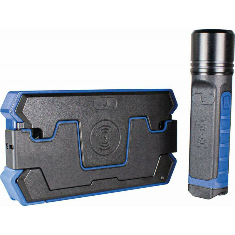 Set di lampade manuali LED ad accumulatore INDU 2 Lampada manuale LED ad accumulatore 10 Watt - Alloggiamento in plastica speciale altamente resistente alla rottura - 4 livelli di luce: 25 lm (durata della luce circa 200 h). 30 lm (tempo di combustione circa 25 h). 400 lm (durata della luce circa 4 ore). 1000 lm (tempo di combustione circa 2 h) - Tempo di ricarica: via USB tipo C circa 4 h. via induzione circa. 6 h - Con indicatore del livello di carica della batteria - Resistente alla polvere e all'acqua pressurizzata IP68 - Temperatura di colore: 6500 K - Testato secondo la norma EN 60598-1 - Utilizzabile in cantieri commerciali ed edili Stazione di ricarica a induzione: - Unità di ricarica 10 W - Alloggiamento con fori - Retro magnetico per il fissaggio a superfici metalliche - I magneti sulla parte anteriore trattengono il faretto durante la ricarica - Scomparto di ricarica aggiuntivo pieghevole per la ricarica di telefoni cellulari con capacità di induzione - IP20 - Per uso
