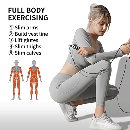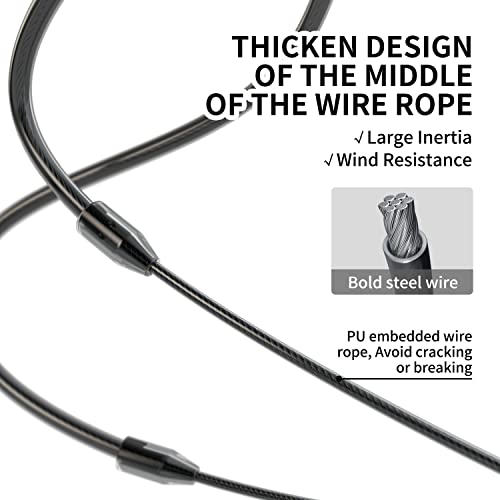 Parte centrale più spessa. Il filo di acciaio da 2,5 mm ricoperto in PU non si piega o si torcisce. Inoltre, una parte più spessa (4 mm di spessore, 1000 mm di lunghezza) a metà del filo di acciaio di 3 metri rende la corda per saltare più resistente e filatura più veloce.