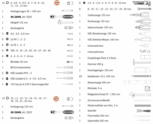 Projahn, Set di attrezzi da elettricista, con valigetta, 128 pz., 8683
