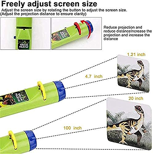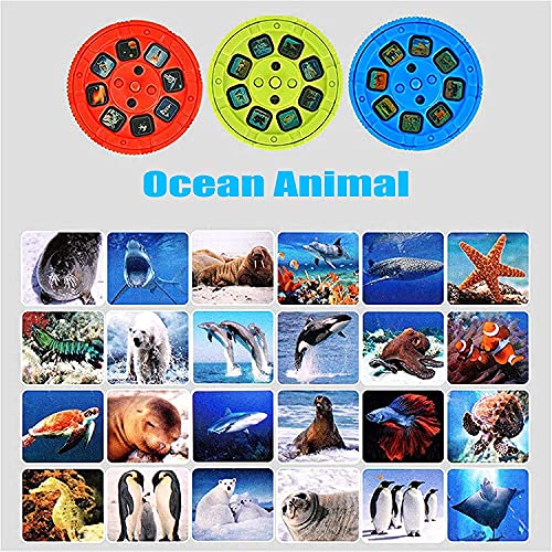 Facile da usare: basta sostituire la diapositiva tirando il coperchio di plastica, quindi inserendo il disco selezionato e ruotando o regolando il disco per osservare l'immagine proiettata. La dimensione è molto adatta per il bambino da afferrare, facile da trasportare, può essere utilizzata come torcia elettrica, dare ai bambini un senso di sicurezza durante la notte