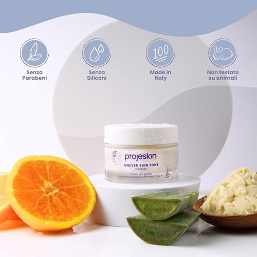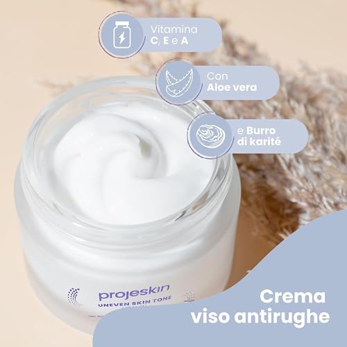 PROJESKIN - Crema Viso Uomo Donna Antirughe con Vitamine C, E ed A - Crema Viso Antirughe, Idratante, Illuminante - Crema Viso Acido Ialuronico Giorno 50ml Made in Italy