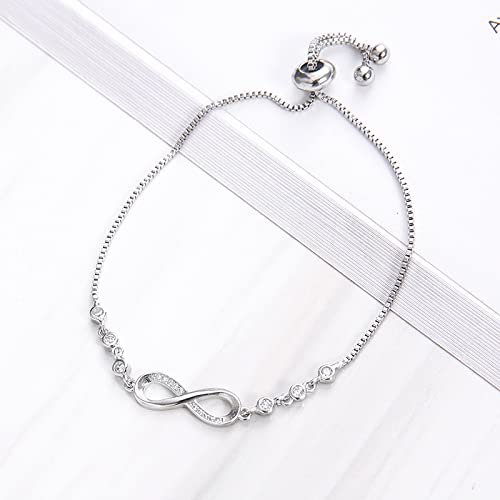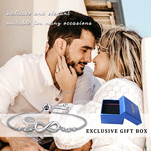 PROJEWE Bracciale in Argento Sterling Braccialetti Infinity con Cubic Zirconia Regolabili per Donna Ragazze Regali di Compleanno San Valentino Festa Della Mamma per lei/mamma/moglie