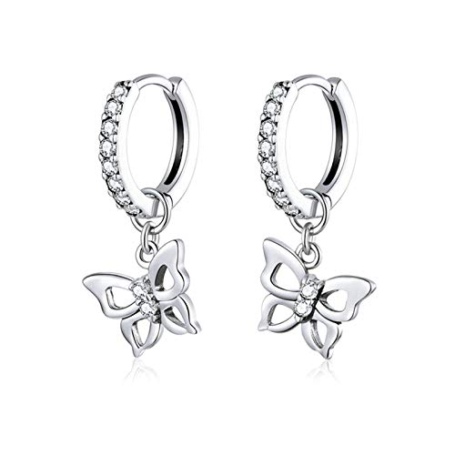 PROJEWE Orecchini Cerchio a Farfalla in Argento Sterling 925 Zirconi Hoop Cerchietto Pendente Orecchini Rotondo Hoop Huggie Orecchino CZ Regali Confezione per Gioielli per Donne Ragazza