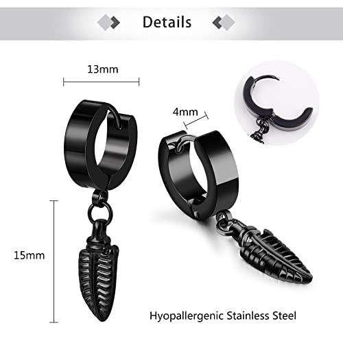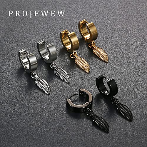 PROJEWE Orecchini per Uomo Donna Orecchini Huggie Hoop con Lama di Piume Pendenti Orecchini Punk Triangolari in Acciaio Inossidabile per Uomo Orecchini Huggie Hoop per Uomo,3 Paia