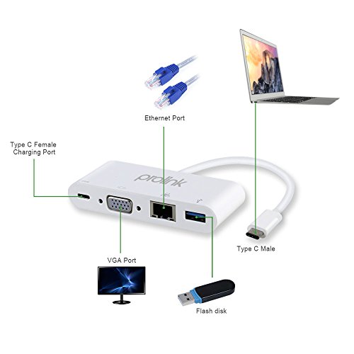 Prolink-Adattatore USB Tipo C a VGA con Porta USB, Ethernet e USB Tipo C (USB 3.1 Tipo-C) Extra Ricarica Porta