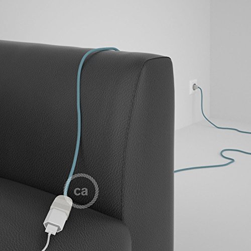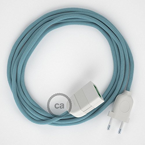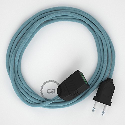 Prolunga elettrica con cavo tessile RC53 Cotone Oceano 2P 10A Made in Italy. - 5 Metri, Nero
