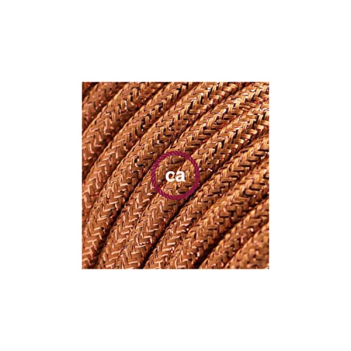 Prolunga elettrica con cavo tessile RL22 Effetto Seta Glitterato Rame 2P 10A Made in Italy. - 5 Metri, Nero