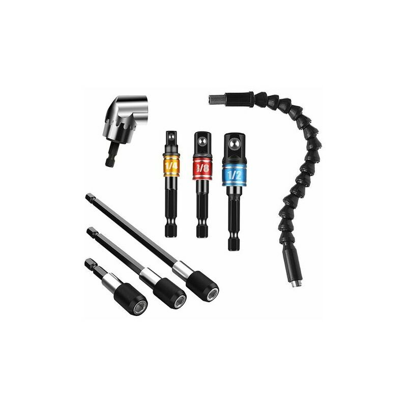 Materiali premium: l'albero flessibile è realizzato in lega con pregevole fattura. Può essere piegato e ruotato liberamente, quindi il trapano può essere utilizzato in uno spazio ristretto che non funziona normalmente. Lega di estensione dell'angolo di 105°, supporto per trapano angolare ad alta durezza, corpo pressofuso resistente alla ruggine, con 3 cuscinetti a sfera, lunga durata, potenti magneti integrati per mantenere una buona presa. 105 ° trapano ad angolo retto: materiale in lega di alta qualità, resistente. Angolo di estensione di 105 gradi, puoi usarlo in luoghi difficili. Ottimo strumento chiave che può essere collegato alla punta del trapano. Confezione da 3 adattatori per prese 1/4, 3/8, 1/2: 3 adattatori per prese 1/4, 3/8, 1 / 2, dadi rimovibili, viti, ganci e viti a strappo in diverse forme e bulloni di prima classe. Confezione da 3 portapunte magnetico a cambio rapido: realizzato in lega, potente magnete permanente integrato (parte del foro), 60mm/100mm/148mm (circa