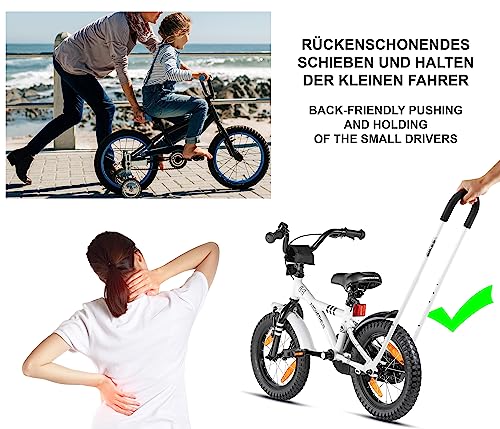 Prometheus Asta di spinta - Barra di sostegno per bicicletta bambini - Assemblaggio - Supporto per l'apprendimento della bicicletta regolabile in bianco edizione 2024