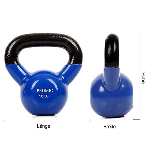 PROMIC, di Kettlebell in ghisa ricoperti con Vinile Neoprene (Gomma) di Colore Blu per Sollevamento e Allenamento aerobico, 2 kg, 4 kg, 6 kg, 8 kg, 10 kg, Blue - 10KG, Sold in Si